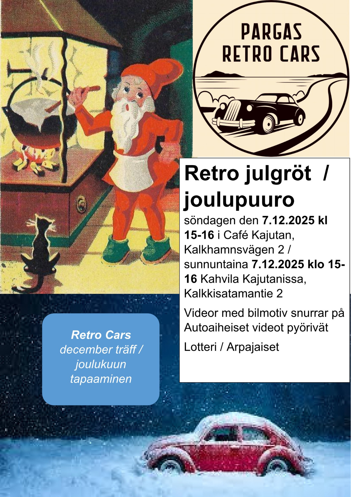 7.12.2025 j´kl. 15:00 äter vi Retro Julgröt i Café Kajutan